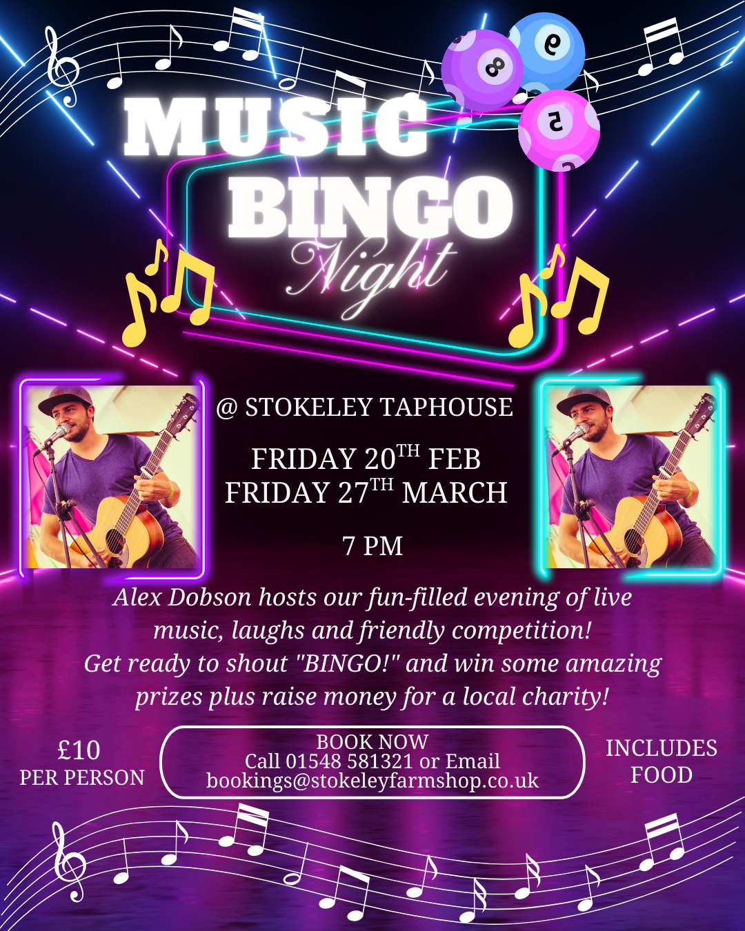 Alex Dobson hosts Live Music Bingo here at the Taphouse. For a fun filled evening, join us for £10 per person, includes food at half time. Prizes for 1 line, 2 lines & house. Get ready to shout “BINGO!” and support another local charity at the same time! Booking advised. 7pm. Check our socials for the latest charity updates and more details.